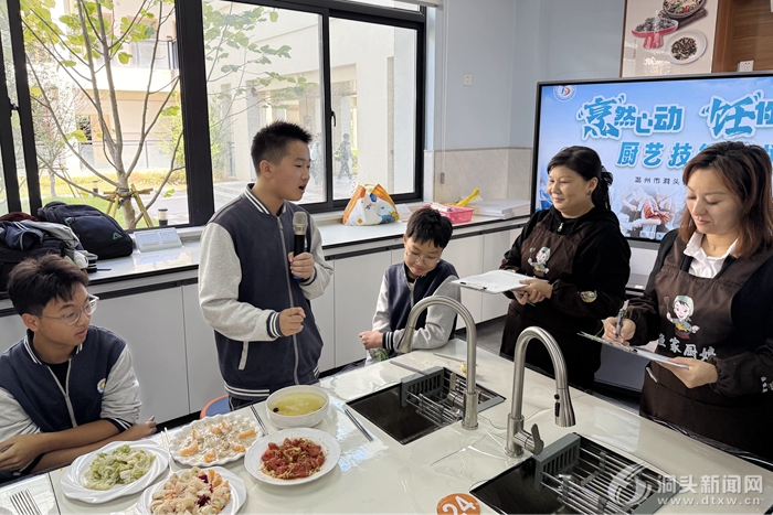 “我和同学一起做的蛋炒饭、西红柿炒鸡蛋,还有紫菜汤等。虽然不能说很好吃的美食,但是我从中感觉到了‘一粥一饭当思来之不易’的内涵,也理解到了厨师们的匠心和辛苦。今天课程非常精彩,我非常开心。”学生林智源说。