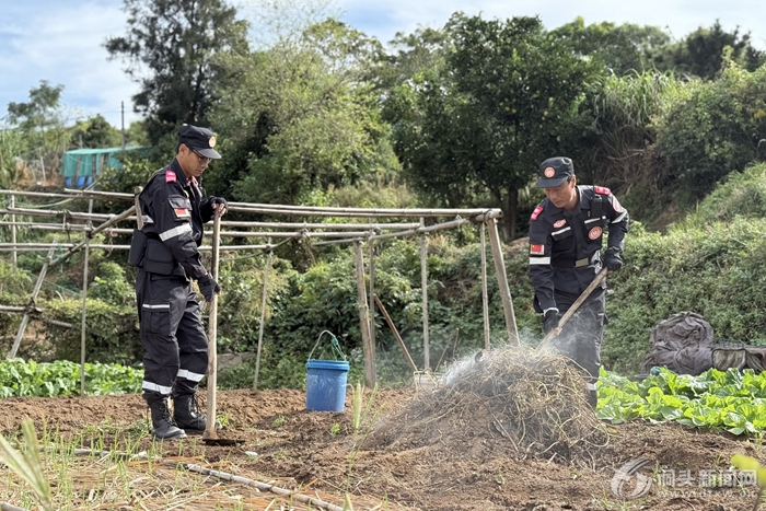 上午九点,在东岙顶村的山林防火检查点,该村应急救援队正在进行日常巡检,队员们沿着山间小道仔细排查隐患,时而驻足观察林缘地带的枯枝落叶堆积情况,时而向正在田间劳作的村民叮嘱防火注意事项。