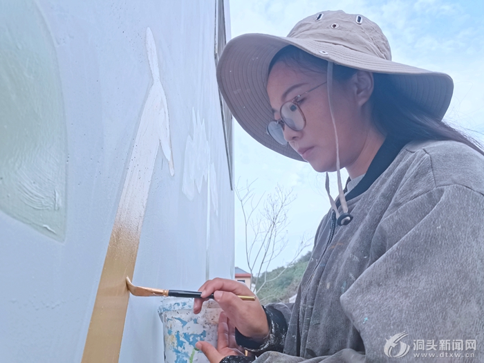 “我在洞头的第一个墙绘工作是在半屏山,当时每天骑自行车出去,然后路上都会遇到一些老人和小孩,他们会热情地跟我打招呼,有一种好像我就是这个村里的人的感觉,很亲切很温暖,让我有一种归属感。”墙绘师黄芳芳说。