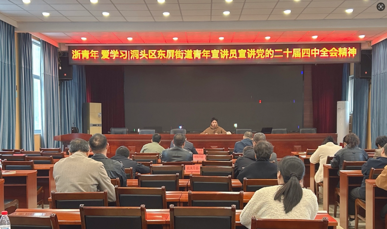 近日,洞头区组织了一场以党的二十届四中全会精神为核心的专题宣讲活动。本次宣讲由“8090”和“00后”宣讲员、选调生许杨杨主讲,面向街道和各村社干部,围绕“投资于人”这一核心主题,结合本地实践案例,深入浅出地解读了全会精神,引发基层干部热烈反响。