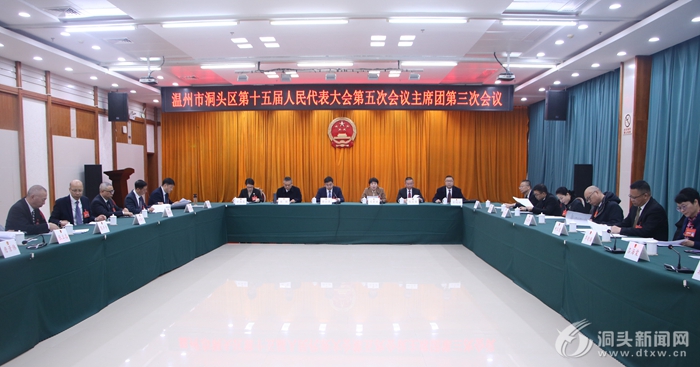洞头网讯(记者 郑鑫 王丛文)1月30日上午,区十五届人大五次会议主席团举行第三次会议。区领导郭云强、刘素婷、林铁、陈后春、甘海选、方均坦出席会议。
