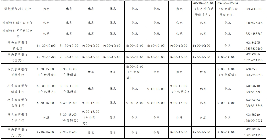 根据《国务院办公厅关于2026年部分节假日安排的通知》,洞头区银行机构春节期间网点营业时间如下,请您查收!