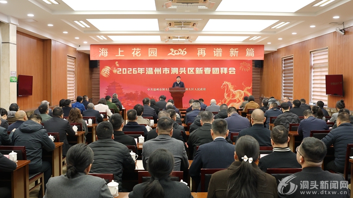 洞头网讯(记者 林锐 潘道阳)灵蛇归海留瑞气,骏马踏浪逐春风。2月13日上午,洞头区举行2026年新春团拜会,区委书记郭云强代表区四套班子向全区人民以及关心支持洞头经济社会发展的各界人士,致以新春的诚挚问候。区领导何莉平、刘素婷、林铁等出席。