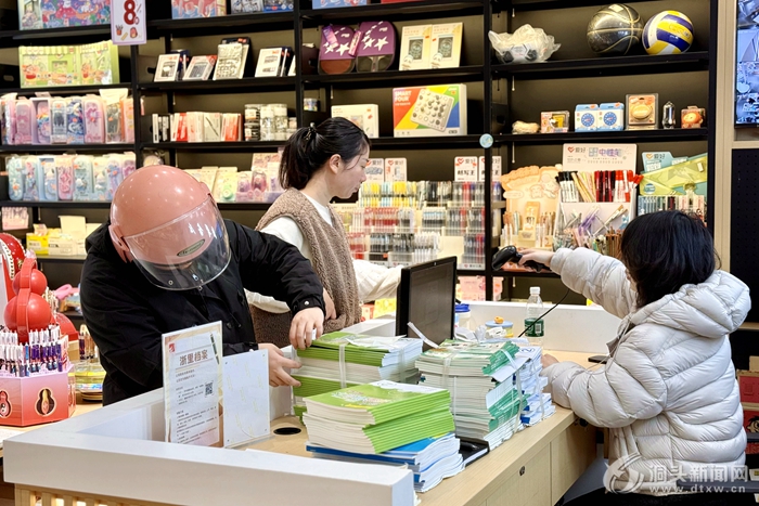 不少市民陆续走进书店,有的在书架前仔细翻阅、比对各类教辅资料,有的拿着选好的书籍前往收银台有序结账,书店内呈现一派繁忙有序的景象。