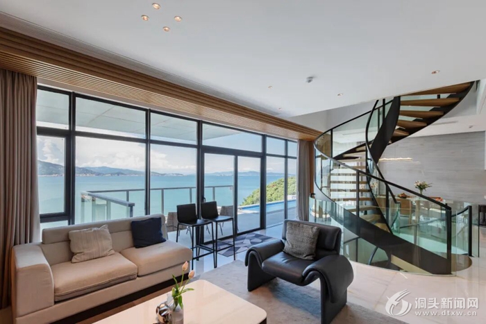 民宿为独栋格局,建筑面积约143平方米,多层空间布局合理,动线流畅。内部旋转楼梯连接各层,搭配天窗设计,自然光充足,整体环境明亮温馨。室内以浅白、浅灰为主色调,辅以原木材质和软装布置,简约又兼具舒适度。每间客房均配有独立卫浴和观景窗,配备舒适床品,部分房间带有海景露台,游客在室内便可聆听海浪、观赏海景,体验滨海休憩的惬意。
