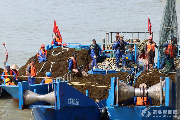 “今年风浪大,菜质反而更好,颜色褐黑、口感更脆。”养殖户陈后照笑着介绍,他今年养殖了700多亩羊栖菜,预计可收获干菜600吨、湿菜5000吨,“前段时间天气不好,只陆陆续续收了一百亩,趁这几天天气晴好,我们抓紧抢收,一天大概能收30船、转运60车。”